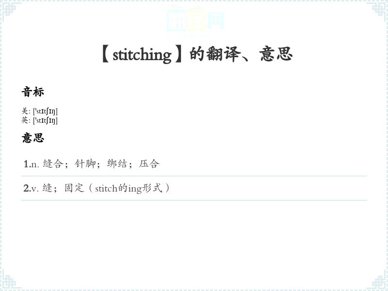 通过这些信息,学*者可以对“stitching”这一单词有更全面的理解和使用。