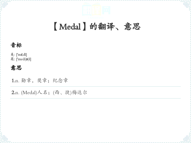 【Medal】是什么意思、字义解释