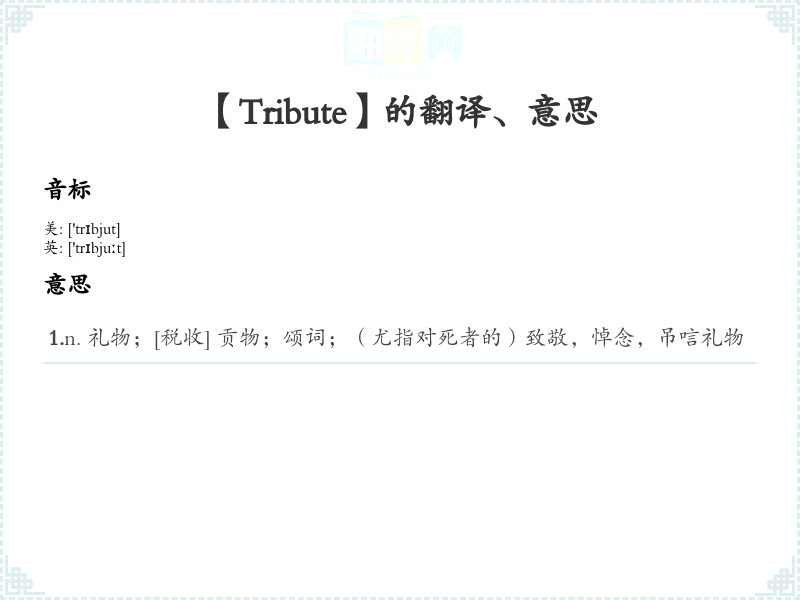 【Tribute】是什么意思、字义解释