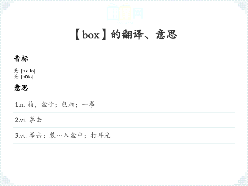 【box】是什么意思、字义解释