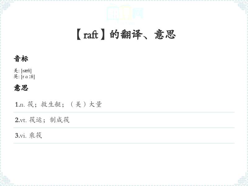 【raft】是什么意思、字义解释
