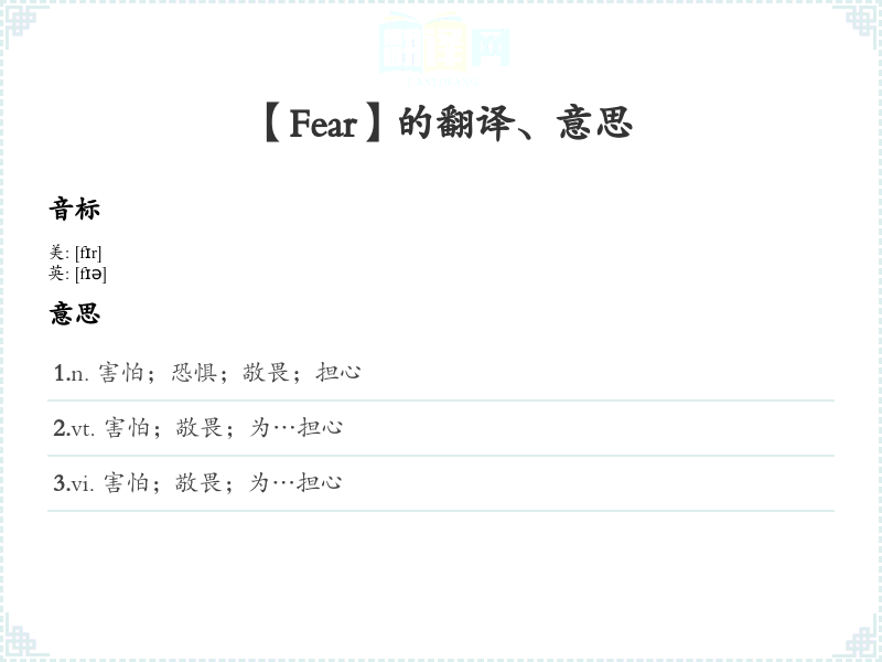 【Fear】是什么意思、字义解释