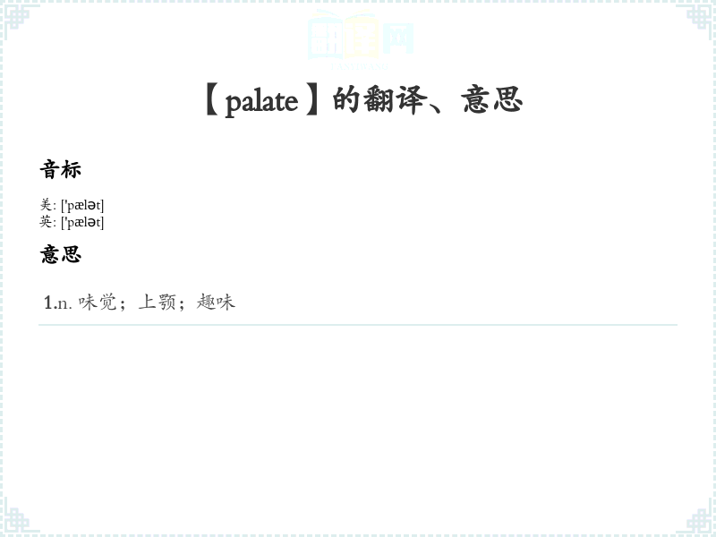 【palate】是什么意思、字义解释