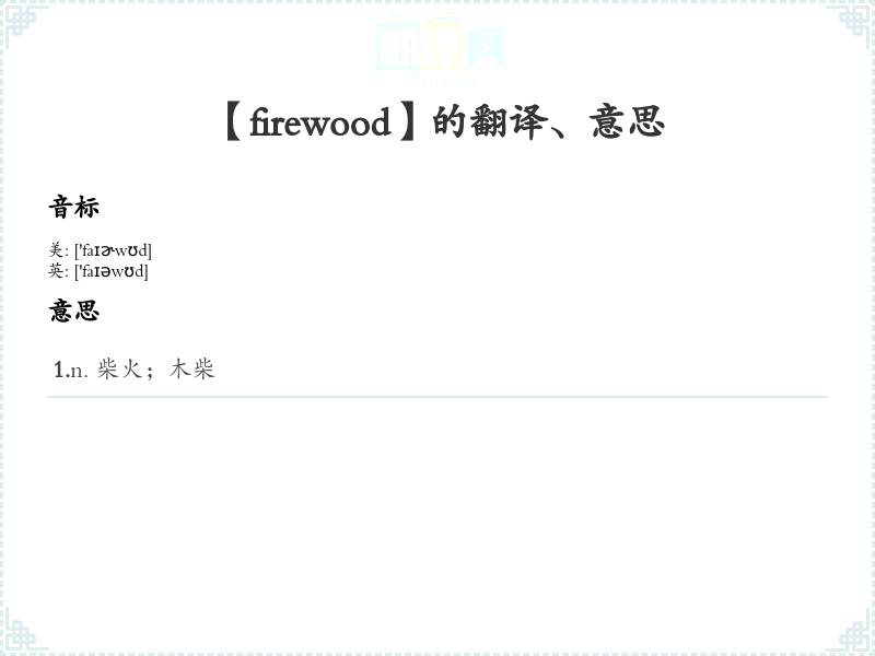 - 音标:/ˈfaɪərˌwʊd/