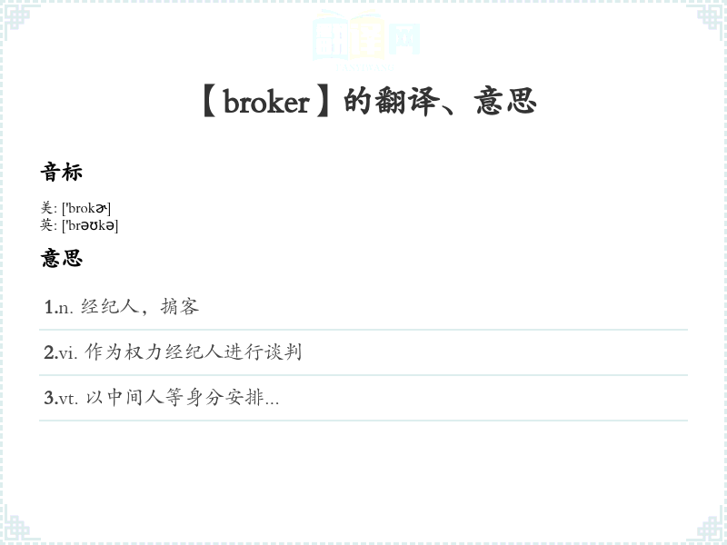 【broker】是什么意思、字义解释
