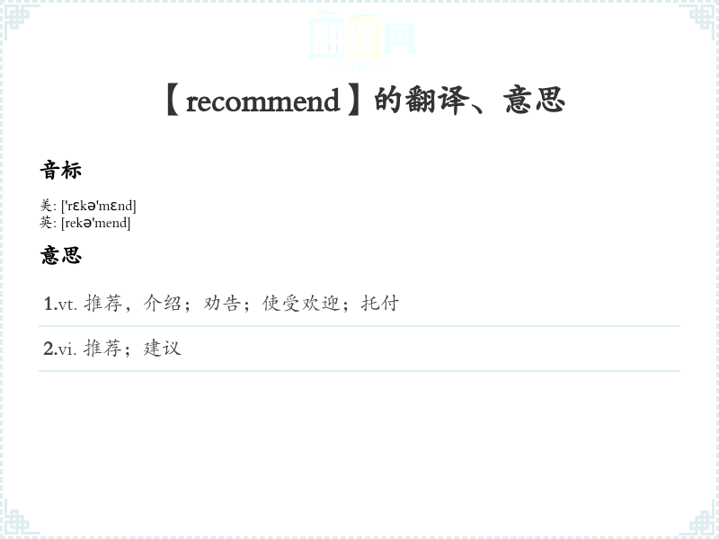 【recommend】是什么意思、字义解释