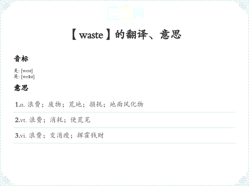 【waste】是什么意思、字义解释