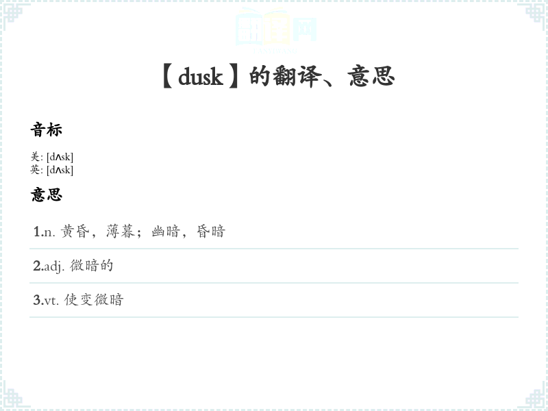 【dusk】是什么意思、字义解释