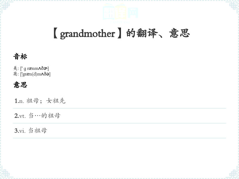【grandmother】是什么意思、字义解释