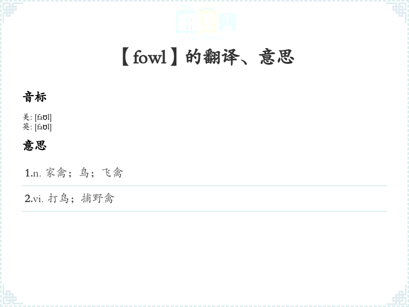 【fowl】是什么意思、字义解释