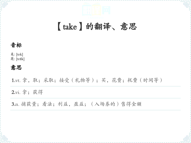 【take】是什么意思、字义解释