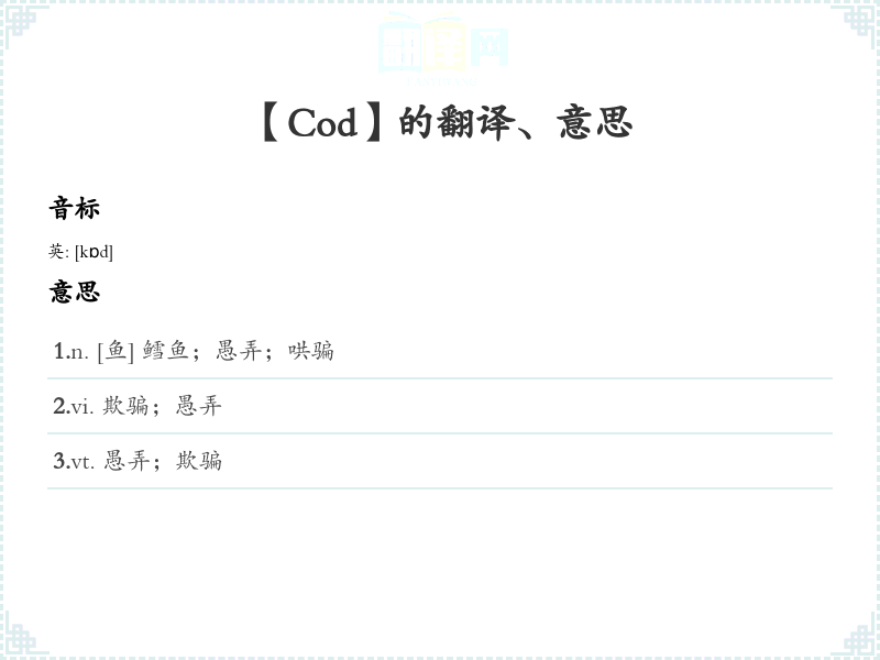 【Cod】是什么意思、字义解释
