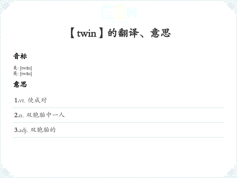 【twin】是什么意思、字义解释