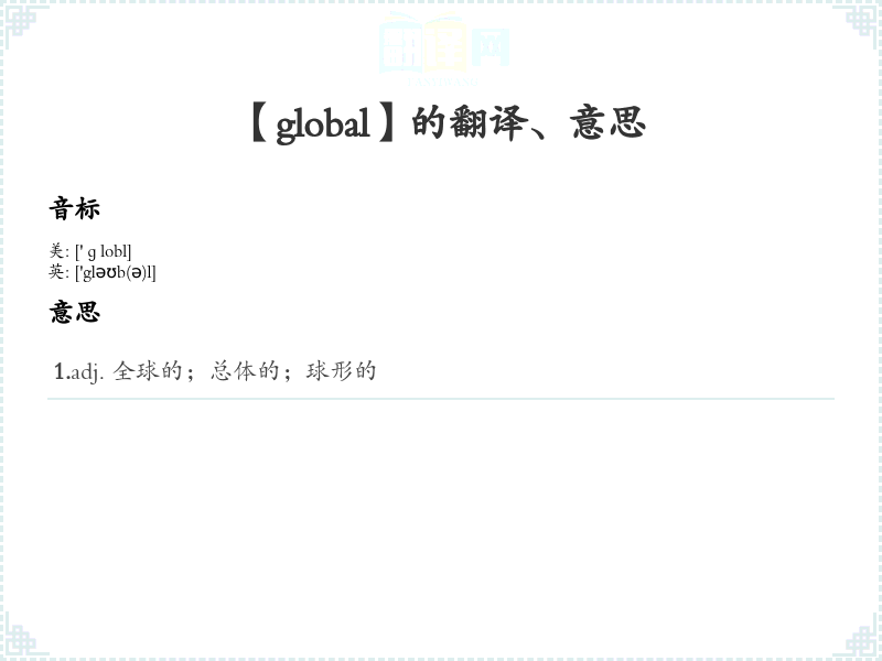 "Global"字面意思为“全球的”,指涉及到整个地球或世界的事物。