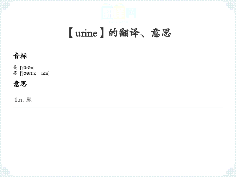 - 音标记忆法:/ˈjʊərɪn/,可以将“urine”分为“u-rin”,联想为“你(u)尿(rin)”,帮助记忆发音。