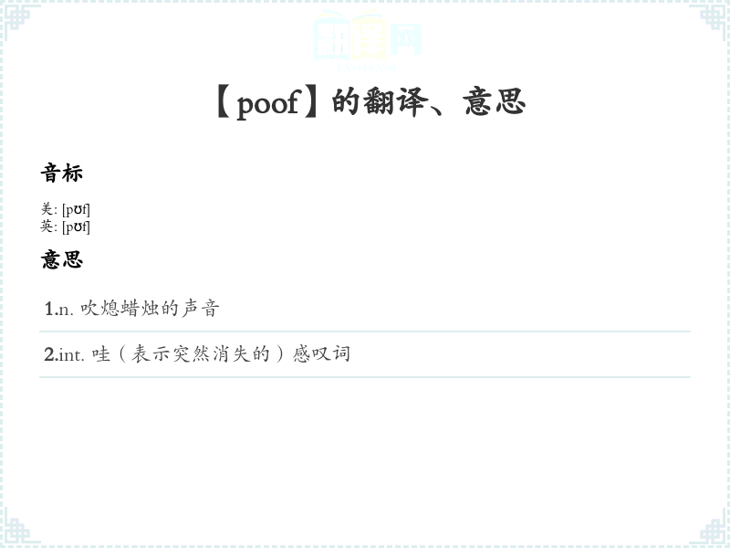 【poof】是什么意思、字义解释