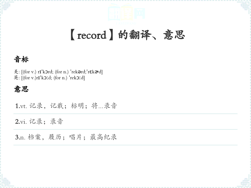 【record】是什么意思、字义解释