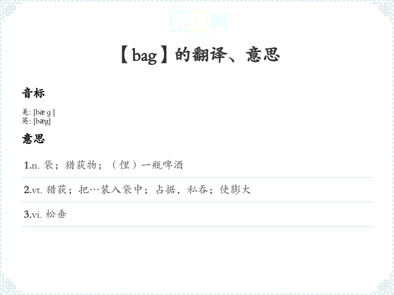 【bag】是什么意思、字义解释