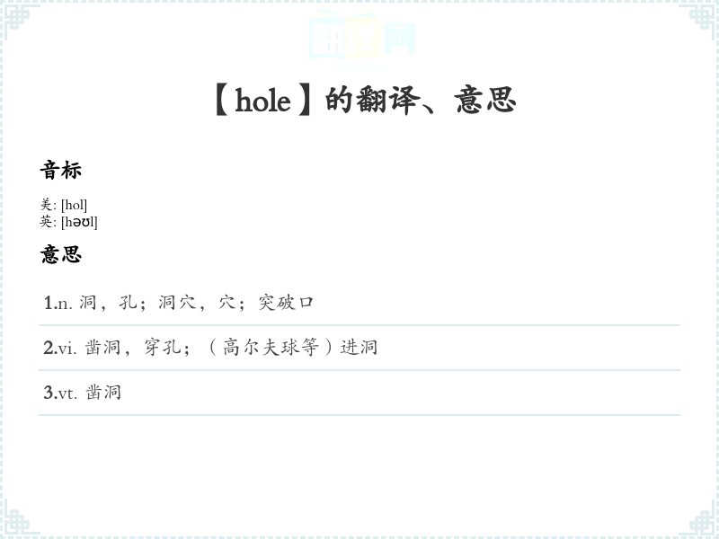 通过这些信息,用户可以更全面地理解和掌握“hole”这个单词的用法及其相关知识。