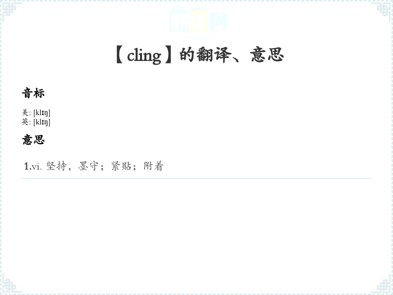 - 谐音联想记忆:可以将“cling”联想为“清”,想象一只小猫在清洁的窗户上依附着,帮助记忆。