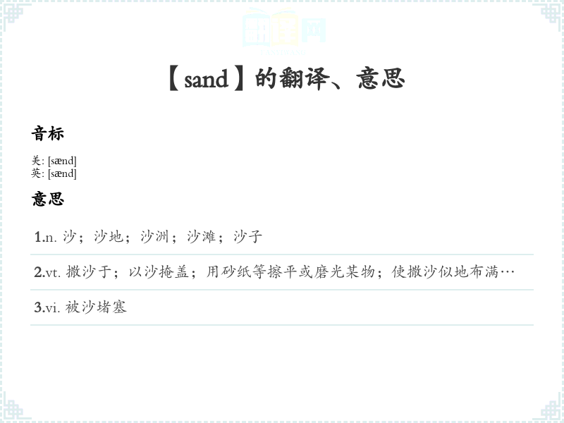 【sand】是什么意思、字义解释