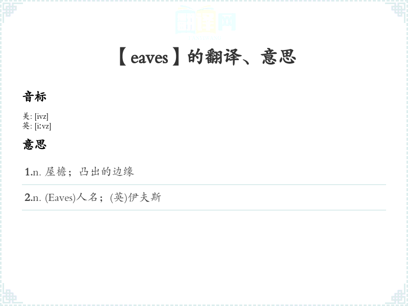 【eaves】是什么意思、字义解释