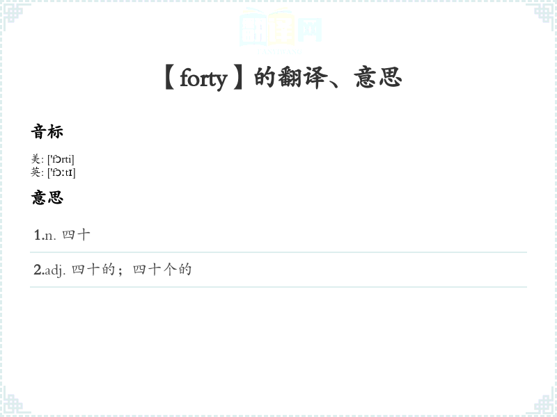 - 在**的英语教材中,“forty”通常出现在小学阶段的基础词汇中。