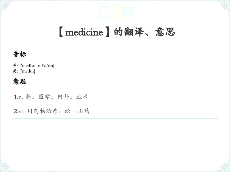 【medicine】是什么意思、字义解释