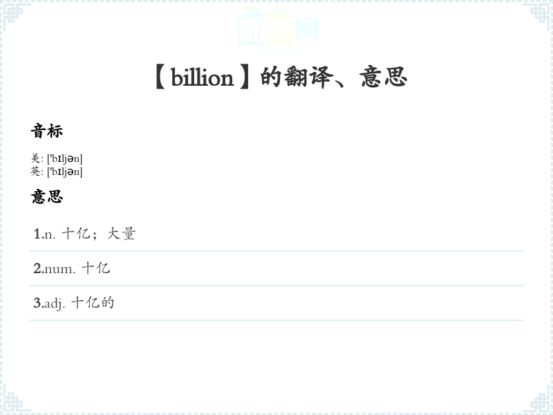 【billion】是什么意思、字义解释