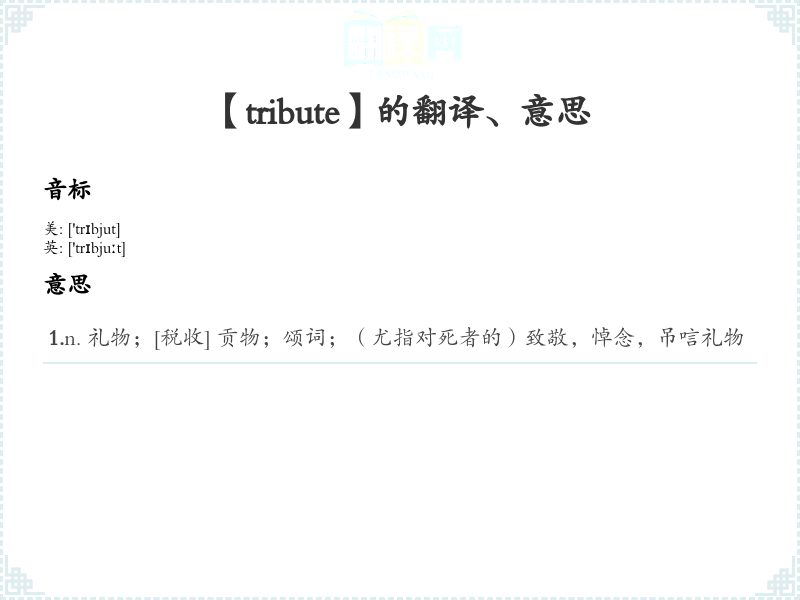 【tribute】是什么意思、字义解释