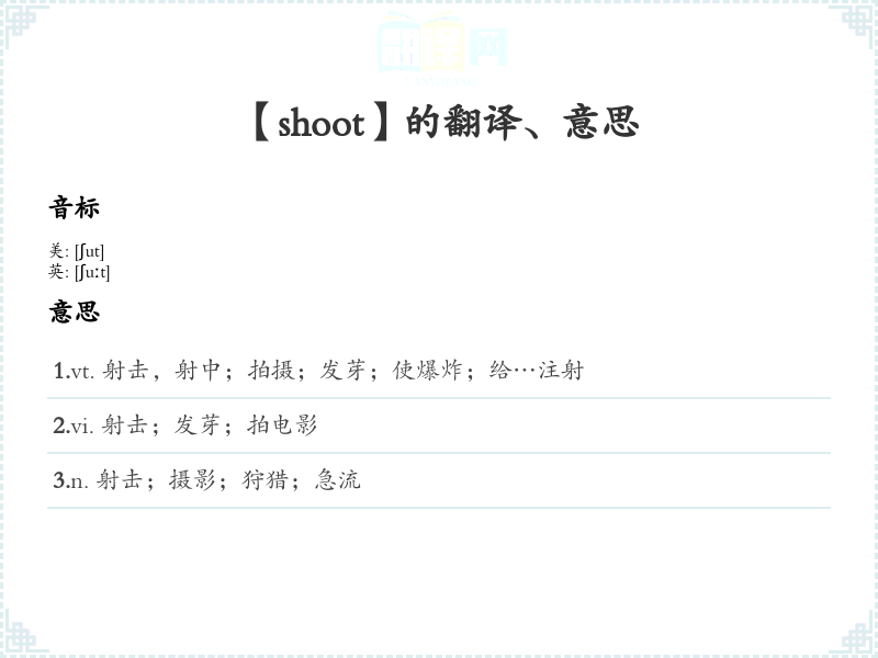 通过以上各方面的分析,可以更全面地理解和运用单词 shoot。