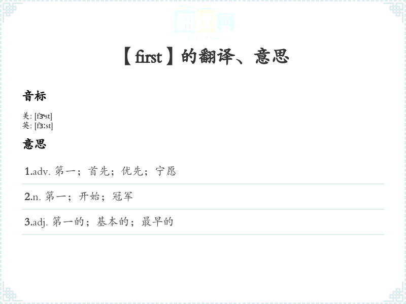【first】是什么意思、字义解释