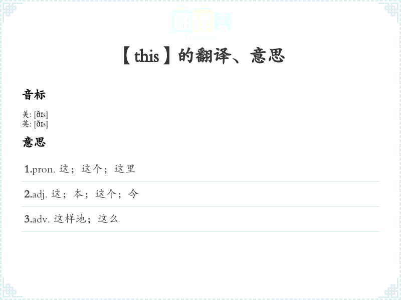 【this】是什么意思、字义解释