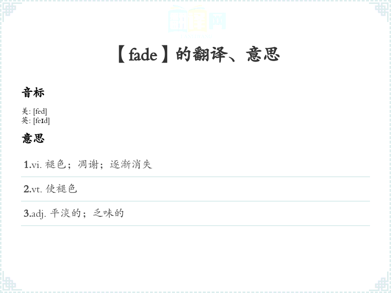 【fade】是什么意思、字义解释