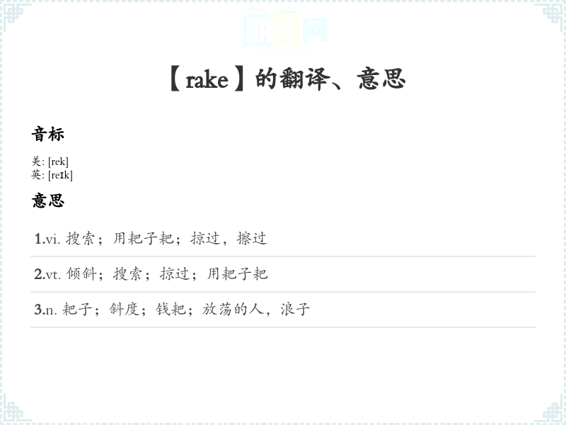 【rake】是什么意思、字义解释