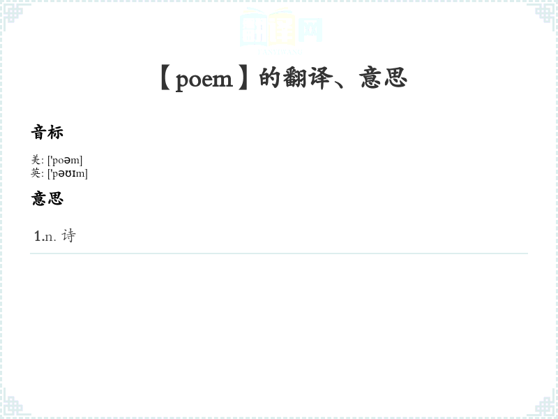 - 音标记忆法:将"poem"的音节分解为/pəʊ.əm/,通过重复发音来增强记忆。