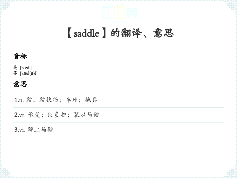 【saddle】是什么意思、字义解释
