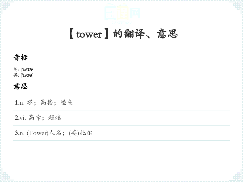 【tower】是什么意思、字义解释