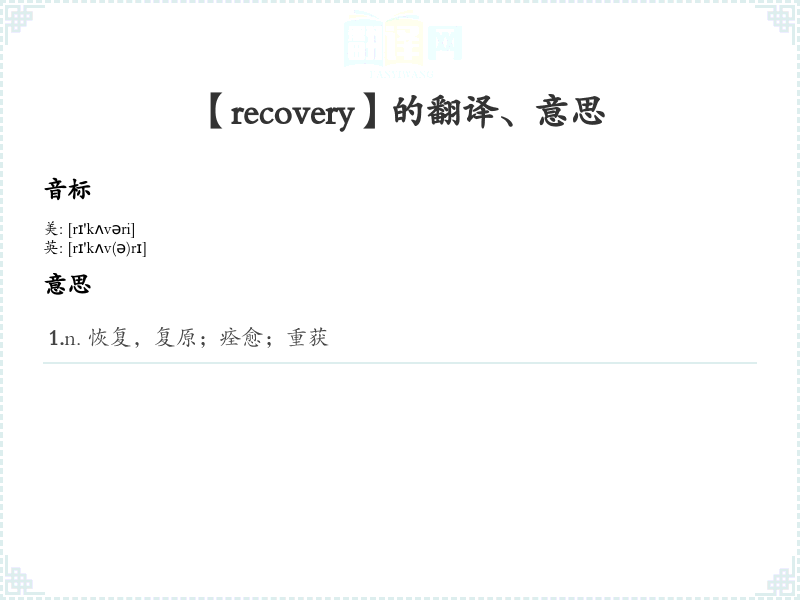 【recovery】是什么意思、字义解释