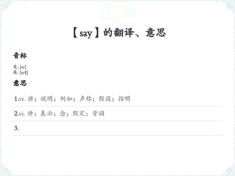 “Say” 是一个动词,表示用语言表达思想、观点或信息。