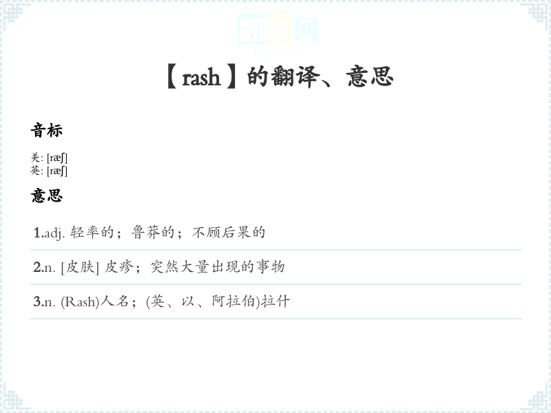 【rash】是什么意思、字义解释