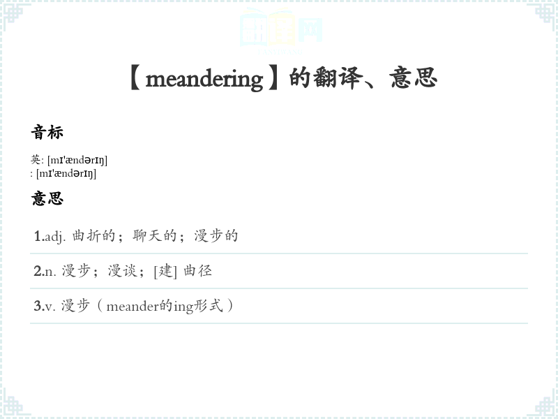 【meandering】是什么意思、字义解释