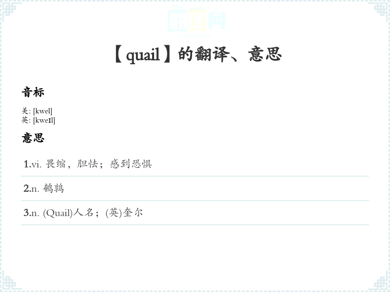 【quail】是什么意思、字义解释