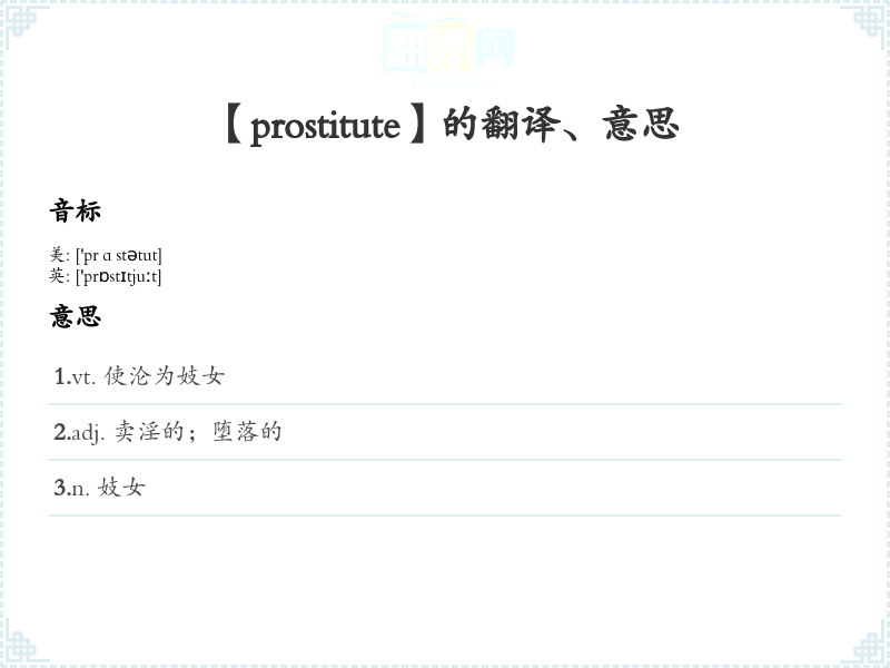 【prostitute】是什么意思、字义解释