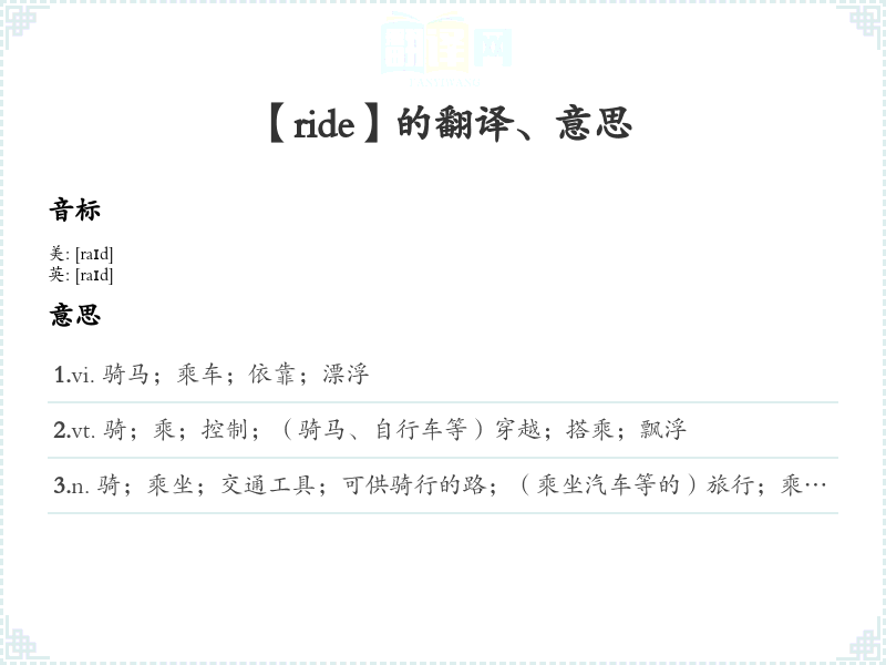 【ride】是什么意思、字义解释