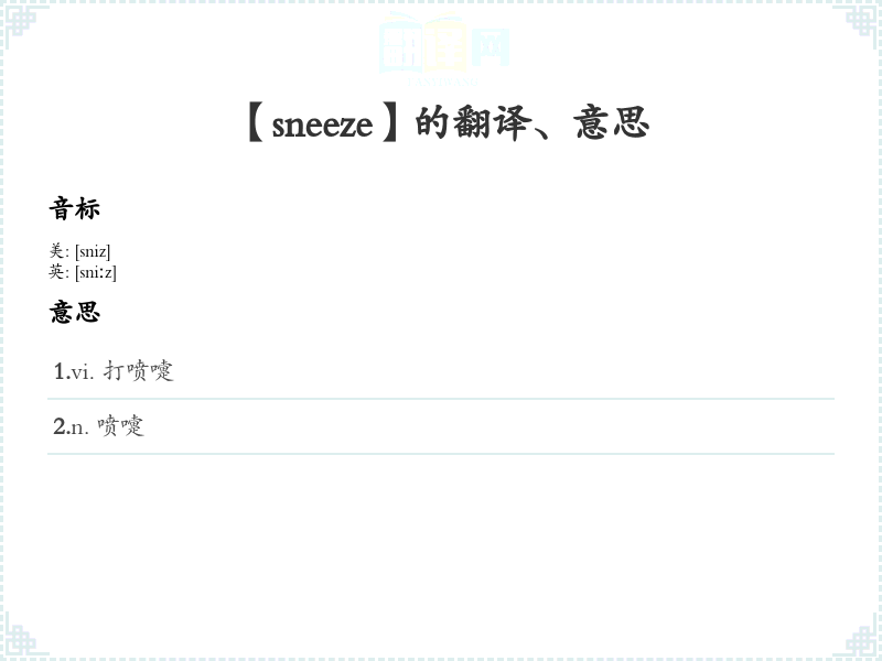 - 词性:动词(to sneeze),名词(a sneeze)。