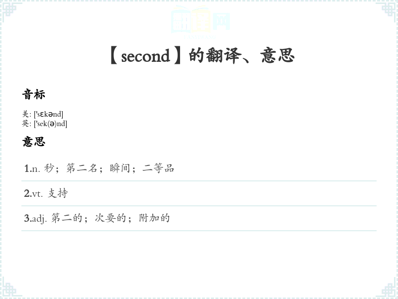 【second】是什么意思、字义解释