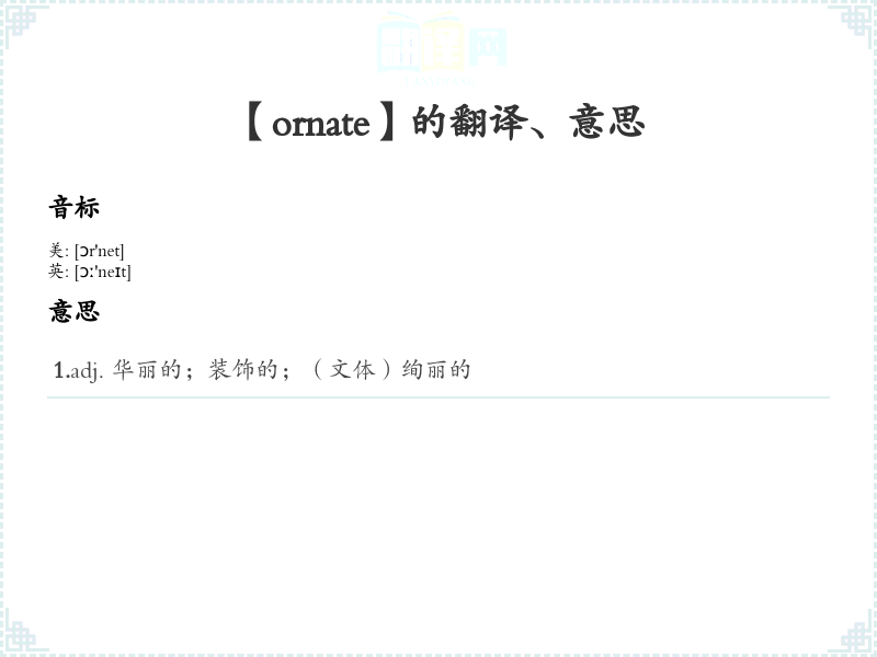 【ornate】是什么意思、字义解释
