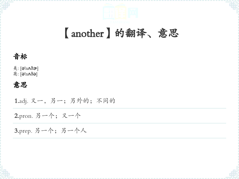 希望以上信息能帮助你更好地理解并掌握“another”这个单词!
