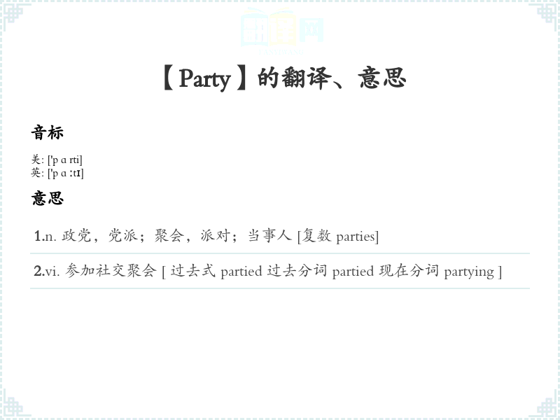【Party】是什么意思、字义解释